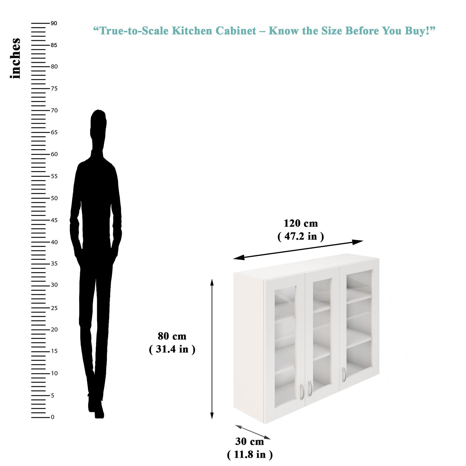 Traksha | Modular Kitchen | Wall Cabinet - 3 Glass Doors kitchen cabinet VIKI FURNITURE White